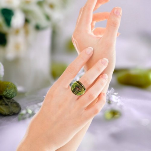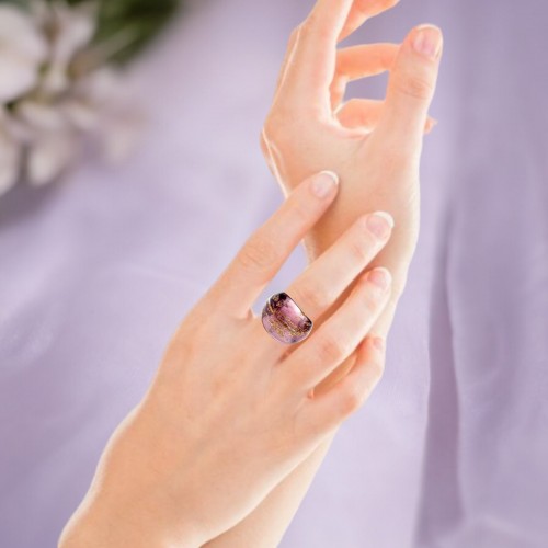Handmade Glass Acrylic Ring Radiance Orchid Golden Infinity Band: US Ring Size 9