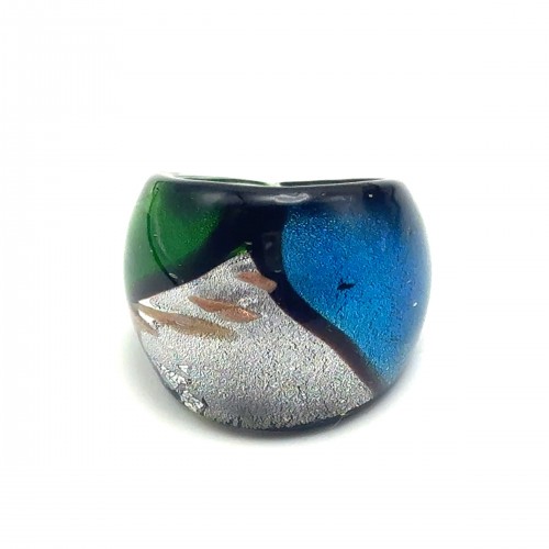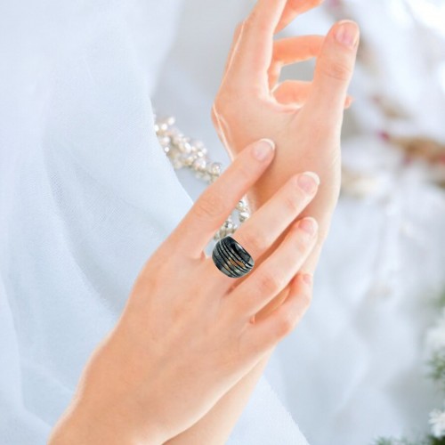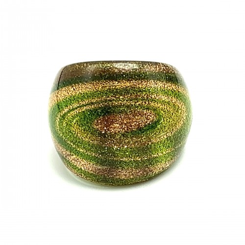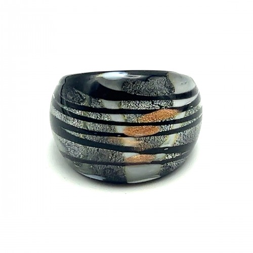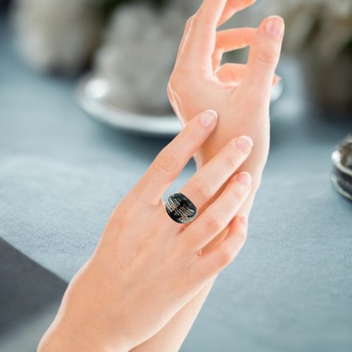 Handmade Glass Acrylic Ring Radiant Noir with Giltter Infinity Band: US Ring Size 8.5