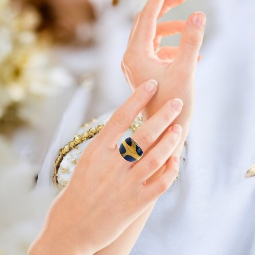Handmade Glass Acrylic Ring Sapphire Brilliance Golden Infinity Band: US Ring Size 9