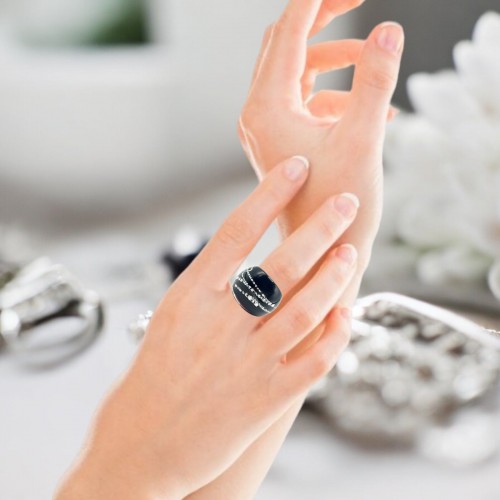 Handmade Glass Acrylic Ring Silver Edge Urban Streak Infinity Band: US Ring Size 8.5