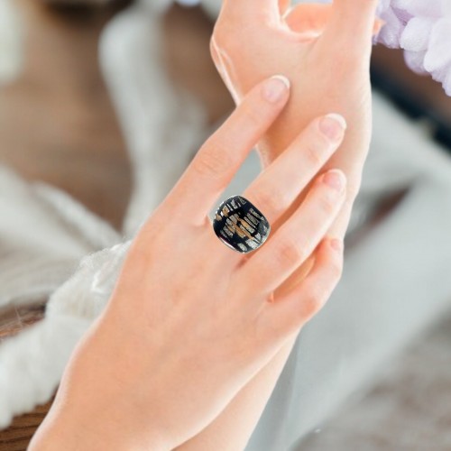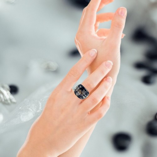 Handmade Glass Acrylic Ring Silver Urban Edge Streak Infinity Band: US Ring Size 7.5
