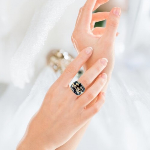 Handmade Glass Acrylic Ring Size 9 Orchid’s Golden Radiance Infinity Band: US Ring Size 9