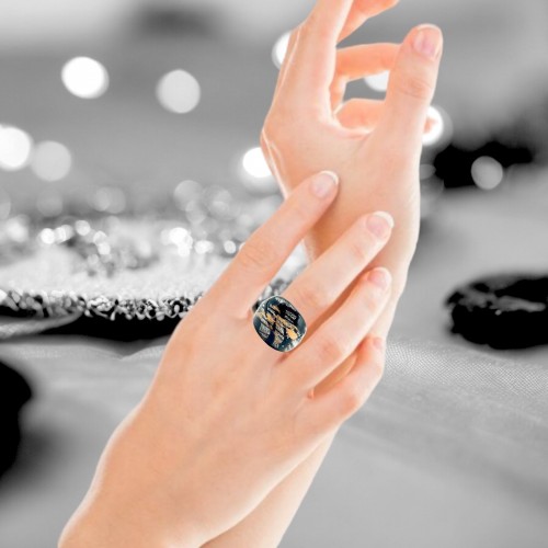 Handmade Glass Acrylic Ring Snowfall Delight Gilded Infinity Band: US Ring Size 9