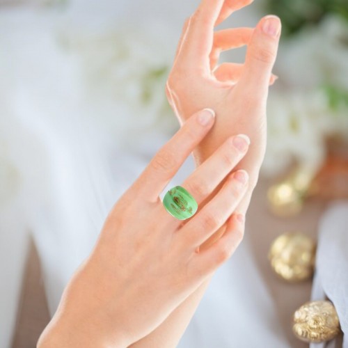Handmade Glass Acrylic Ring Sparkled Elegance Mint Golden Infinity Band: US Ring Size 7.5