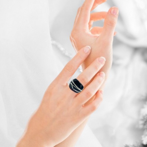 Handmade Glass Acrylic Ring Streak Edge Urban Silver Infinity Band: US Ring Size 8.5