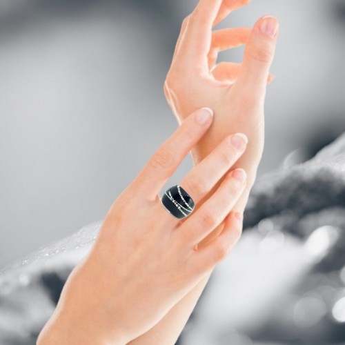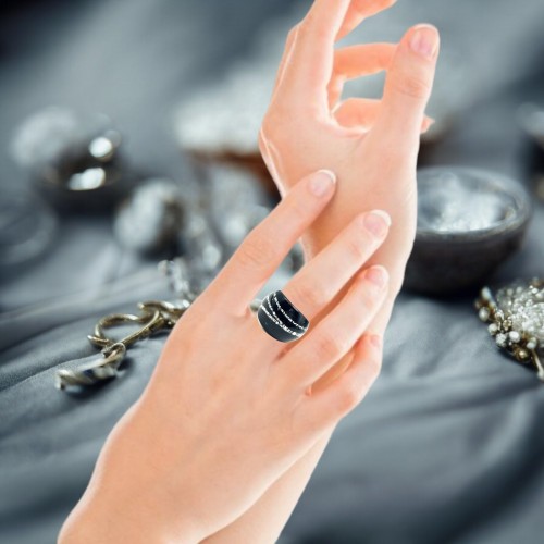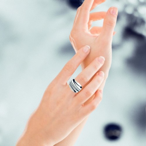 Handmade Glass Acrylic Ring Streak Silver Edge Urban Infinity Band: US Ring Size 5