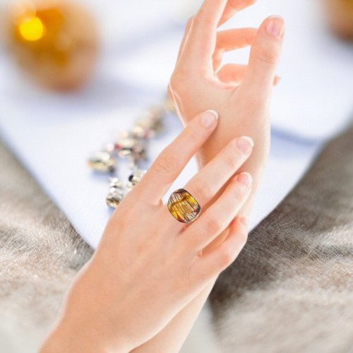 Handmade Glass Acrylic Ring Symphony Amber Stroke Silver Infinity Band: US Ring Size 9