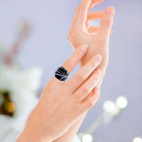 Handmade Glass Acrylic Ring Urban Streak Silver Edge Infinity Band: US Ring Size 5