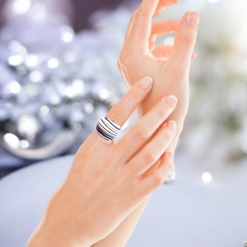 Handmade Glass Acrylic Ring Urban Streak Edge Silver Infinity Band: US Ring Size 5