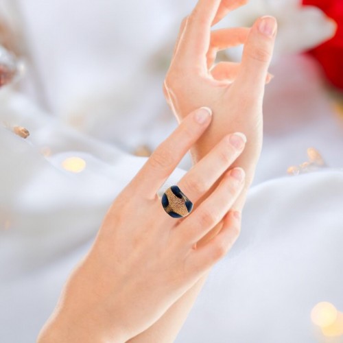 Handmade Glass Acrylic Ring Veils Floral Navy Gold Infinity Band: US Ring Size 6.5