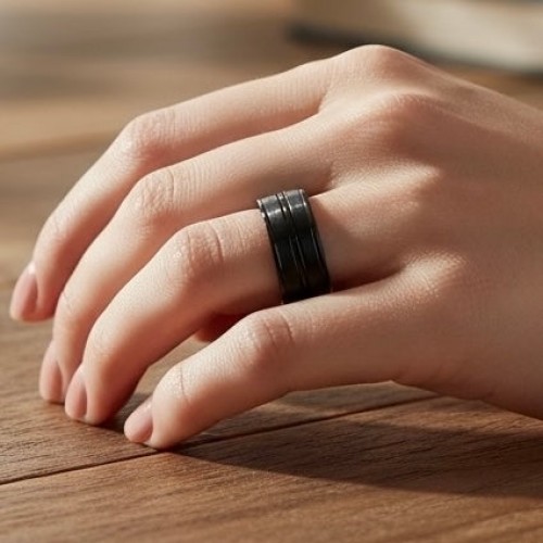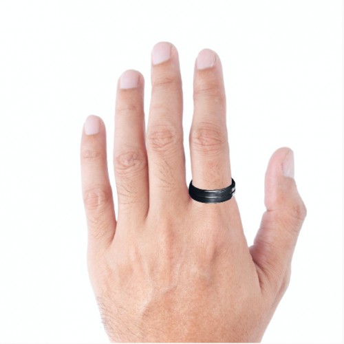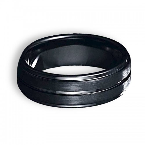 Tungsten Ring Black Brushed Polished Center Grooved Flat Stylish Band 9