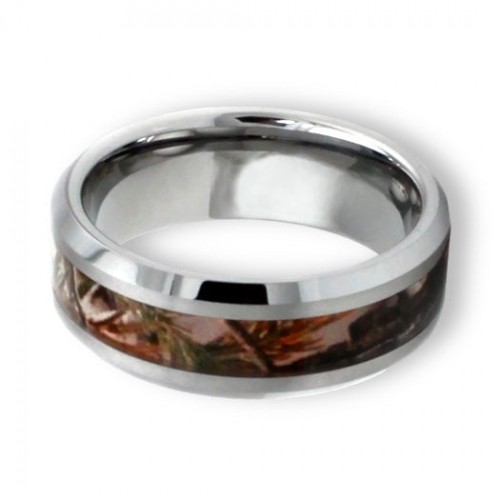 Tungsten Ring Beveled Edges Camouflage Inlay Hunting Pattern Finished 8mm Band