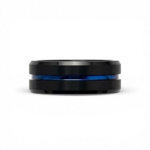 Tungsten Ring Two-Tone Black And Brushed Silver Color Beveled Edges Band 10