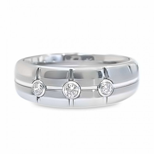 Tungsten Ring Silver Brushed Groove Center Pipe Cut With White Zirconia 6mm Band