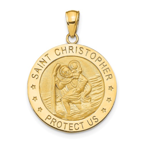 14k Yellow Gold Saint Christopher Pendant, Travel Protection Religious Medal for Men and Women