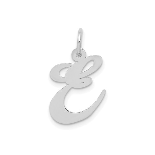 14k White Gold Cursive Initial E Pendant Charm, Polished Script Letter Jewelry for Women