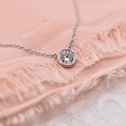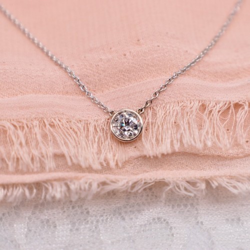 0.52cts 14K White Gold Solitaire Diamond Bezel Necklace