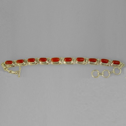 Red Coral Cabs Sterling Silver Link 6.75″ to 8″ Bracelet, 15 CTW