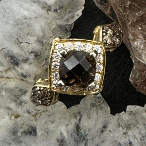 Le Vian 14K Yellow Gold Ring with Cushion Cabochon Smoky Quartz and Diamonds