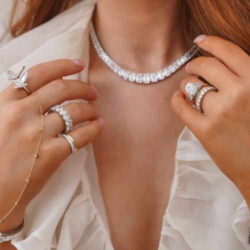 Two-Tone Gold & Pave Diamond Illusion Stacking Band Two Tone: 14k Yellow Gold Band + 14k White Gold Pave Band