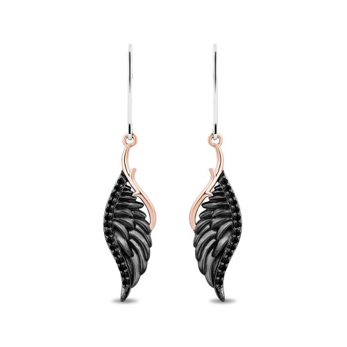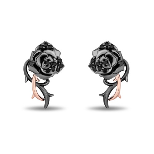 Enchanted Disney Fine Jewelry Black Rhodium over Sterling Silver with 1/10 CTTW Maleficent Earrings