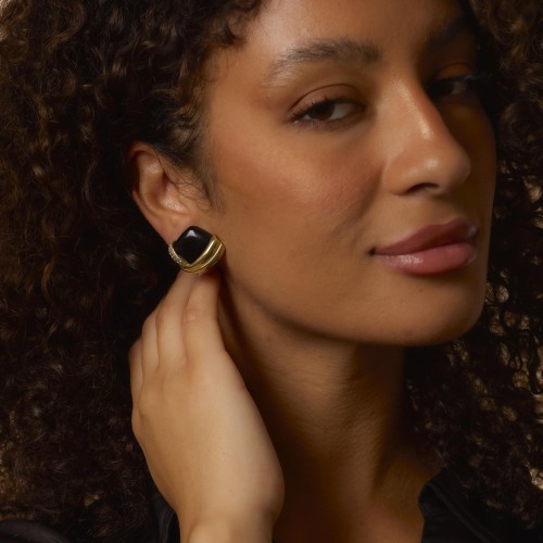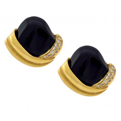 Marlene Stowe diamond onyx 18k yellow gold earrings