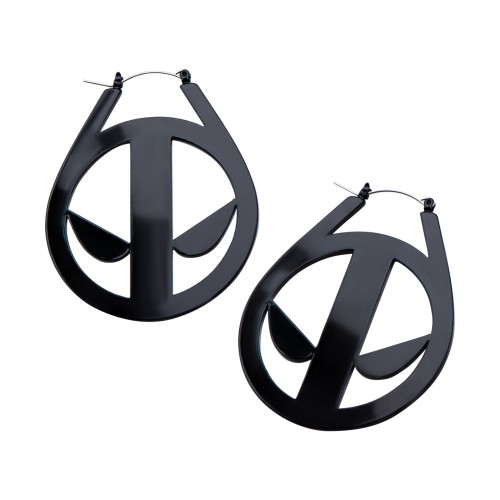 Marvel Base Metal & Black Plated Deadpool with Steel Plug Hoop Earrings