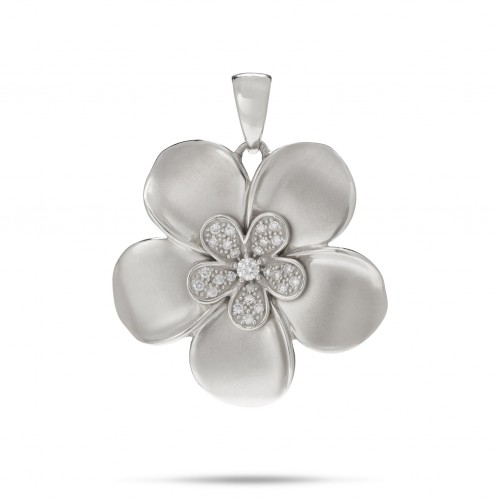 Plumeria Tahitian Black Pearl Pendant in Gold with Diamonds – 9-10mm