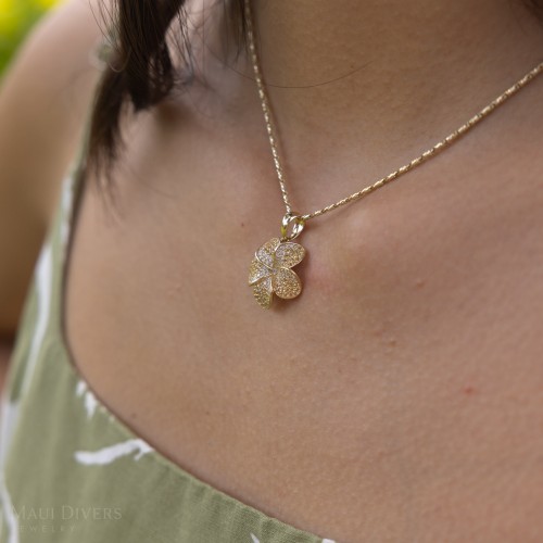 Plumeria Yellow Sapphire Pendant in Gold with Diamonds – 20mm