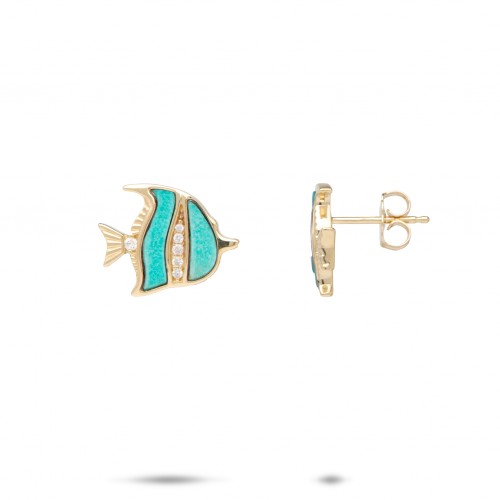 Sealife Angelfish Turquoise Earrings in Gold with Diamonds – 12mm