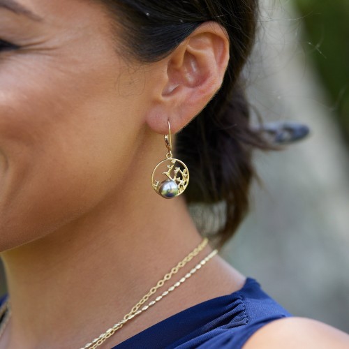 Reefs Starfish Tahitian Black Pearl Earrings in Gold with Diamonds – 10-11mm