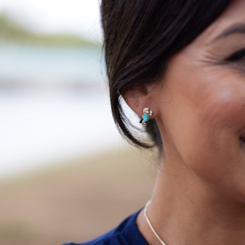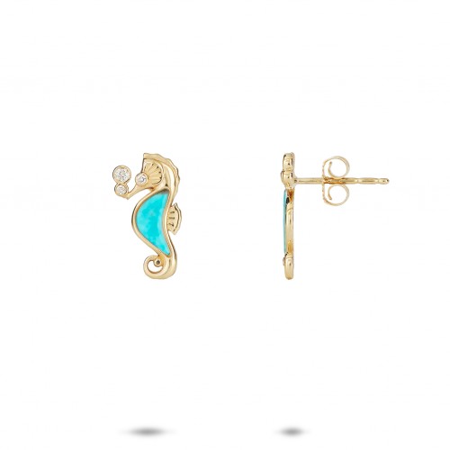 Sealife Seahorse Turquoise Earrings in Gold with Diamonds – 15mm