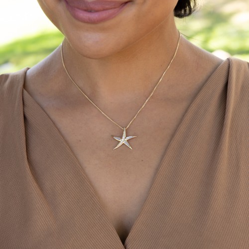 Sealife Starfish Black Coral Pendant in Gold with Diamonds – 21mm