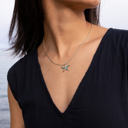 Sealife Starfish Turquoise Pendant in Gold with Diamonds – 23mm