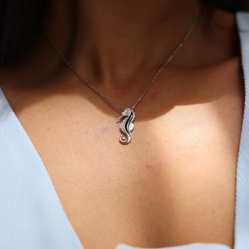 Sealife Whale Tail Black Coral Pendant in Gold with Diamonds – 21mm