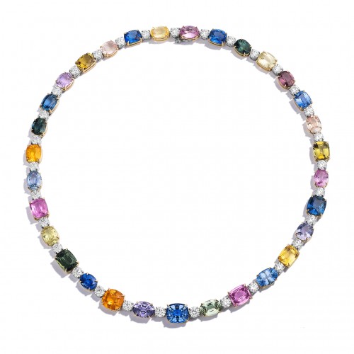 Private Reserve Platinum and 18k Multi Color Sapphire and Diamond Necklace