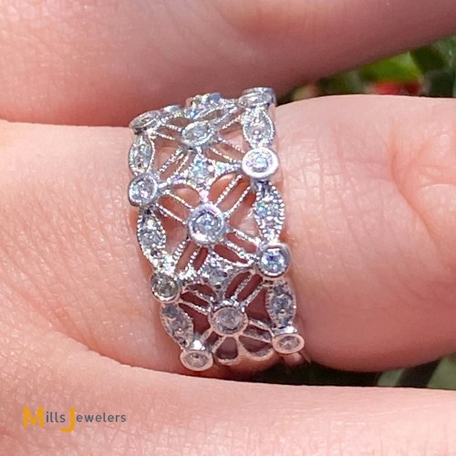 18K White Gold 0.27ctw Diamond Filigree Web Band Ring Size 6.5