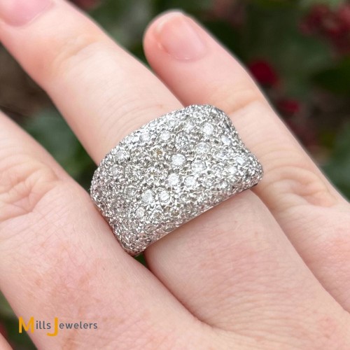 Berdnik Vintage 18K White Gold 2.95ctw Pavé Round Brilliant Diamond Cluster Band Size 6.5