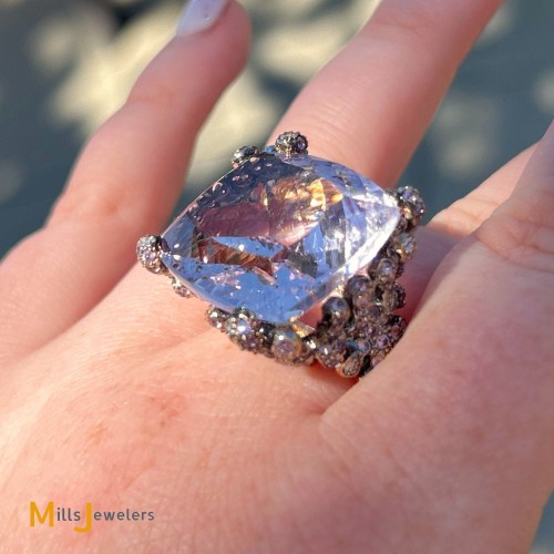 Vintage 18K Two-Tone Rose & White Gold 16.37ct Aquamarine Diamond Cocktail Ring Size 7