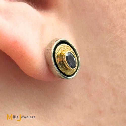 Vintage Ormachea Jewelry 18K Yellow Gold and 925 Sterling Silver 0.4ctw Tanzanite Stud Earrings
