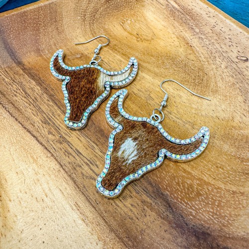 Grit – Hair on Leather & Rhinestone Steer Head Earrings
