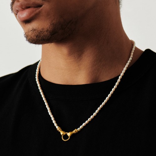 Harris Reed In Good Hands Pearl Pendant Necklace | 18k Gold Plated/Pearl & Black Onyx