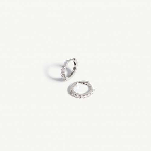 Fine Classic Diamond Huggies | 14k White Gold/Diamond 14k Solid White Gold/Diamond