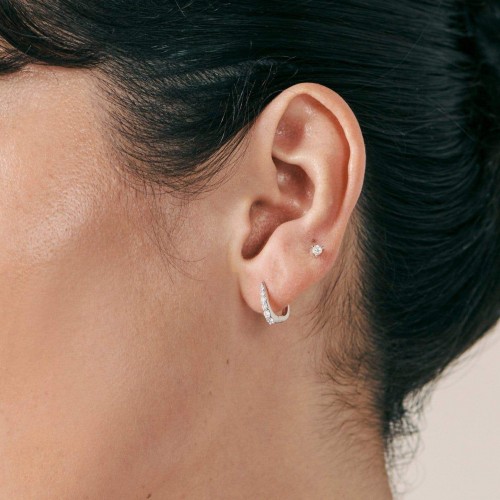 Fine Claw Huggies | 14k White Gold/Diamond 14k Solid White Gold/Diamond