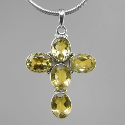 Peridot Cross 4 CTW 6 Faceted Ovals Bezel Set Sterling Silver Pendant