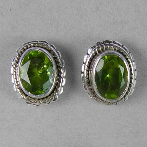 Peridot Faceted Oval Fancy Bezel Post Sterling Silver Earrings