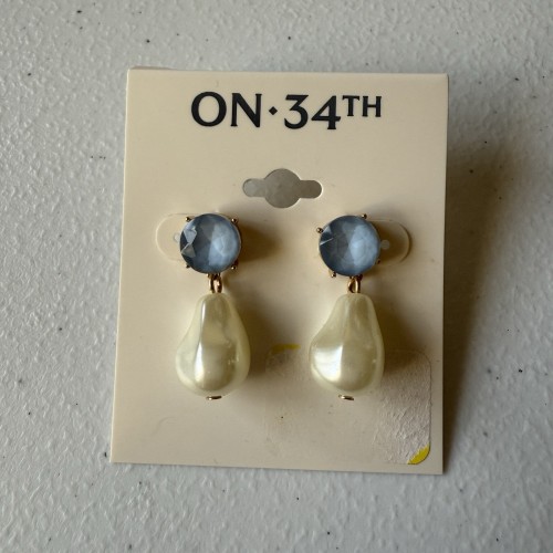 NWT On 34th baroque Imitation pearl and blue stud Drop earrings Gold Tone