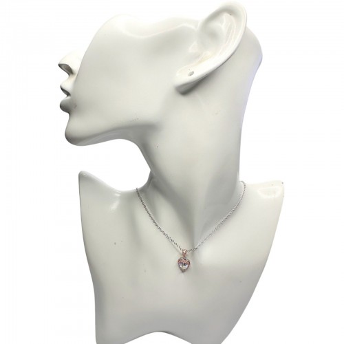 Pretty Rhodium Plated Pink Topaz and Zirconia Heart Necklace