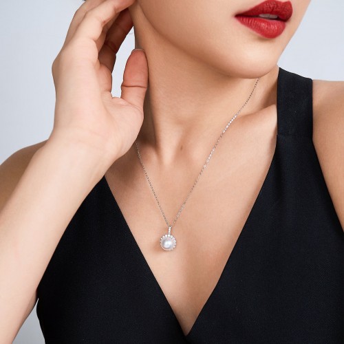 18K Solid Gold Diamond Akoya Pearl Necklace KN00187 | POSSIBILITIES