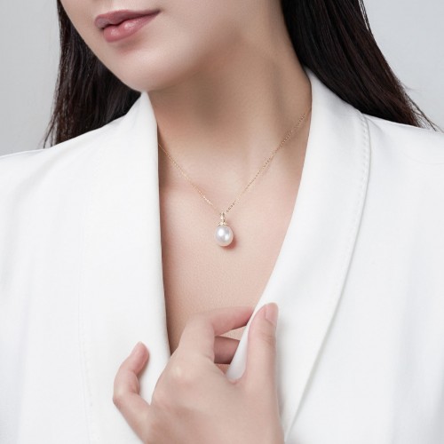 18K Solid Gold Diamond Saltwater Pearl Necklace KN00269 | HARMONY